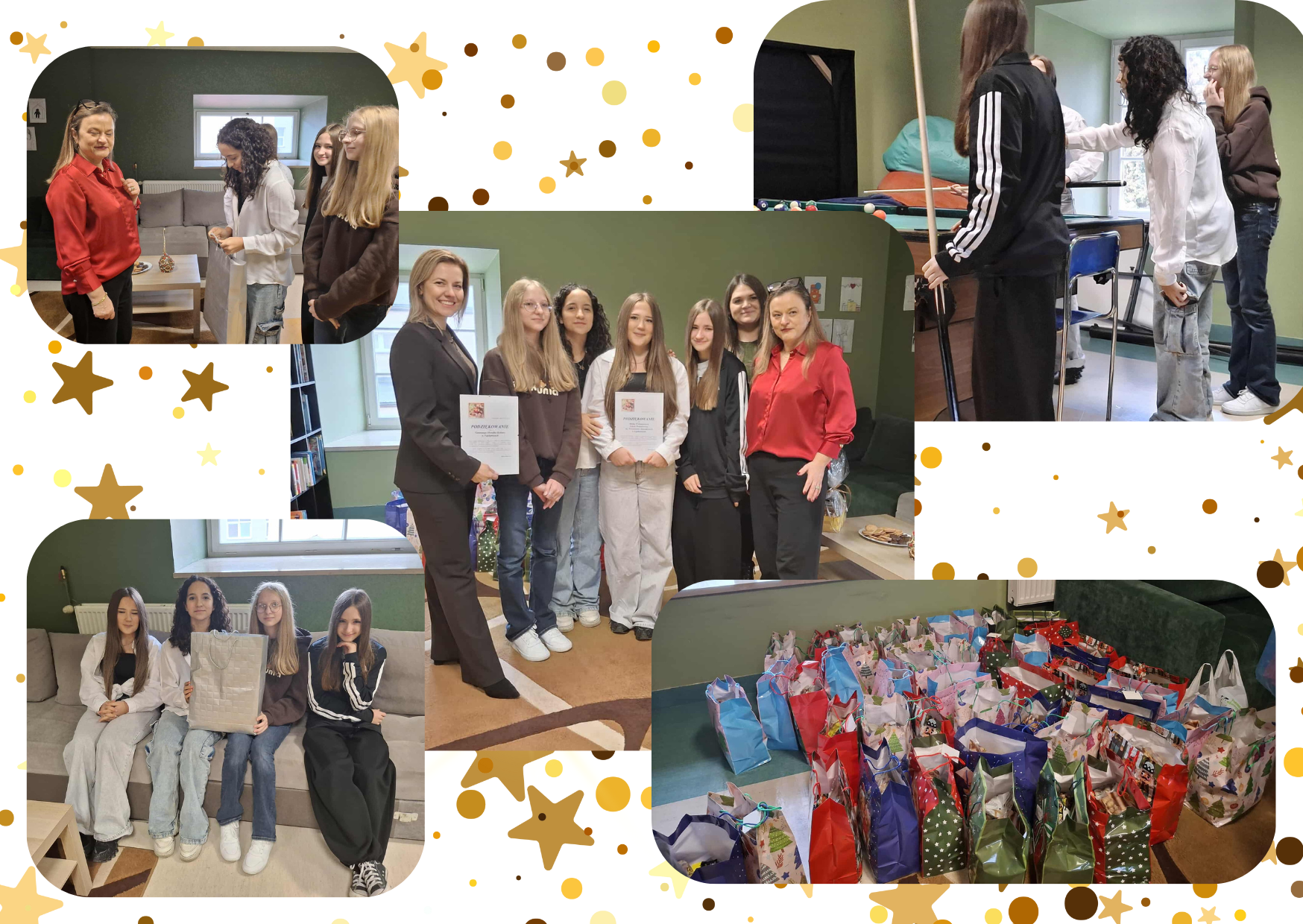 Przedstawiciele Szkolnego Klubu Wolontariusza wraz z panią Dyrektor Gminnego Ośrodka Kultury Eweliną Mazur przekazali świąteczne paczki i pieniądze (3200zł) z Kiermaszu Ciast. Pani Dyrektor Placówki Opiekuńczo-Wychowawczej Bożena Dąbrowska przekazała podziękowania za nasze otwarte serca i pomoc. Wolontariuszki podczas wspólnej herbaty dowiedziały się ilu wychowanków i w jakim wieku przebywa w placówce, a czas świąt w placówce pozostaje 10 wychowanków z 24 tam przebywających. Poznały ciekawostki historyczne dotyczące budynku placówki, który powstał w latach 1394 - 1434 i był klasztorem Augustianów.